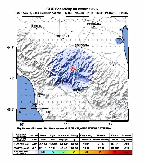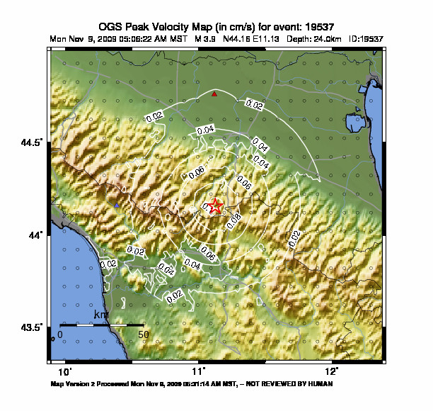 La mappa mostra gli ultimi 100 terremoti (simboli marrone) localizzati entro 30 km dall'epicentro e gli eventi con magnitudo maggiore di 3.8 (con simbolo viola, se presenti) localizzati dal 1977 nella stessa area. Clicca su ogni evento per dettagli. È inoltre possibile scaricare il file .kml o .csv con tutti gli eventi da noi registrati, entro 30 km dall’epicentro, a partire dal 1977. export in csv format export in kml formatLegenda