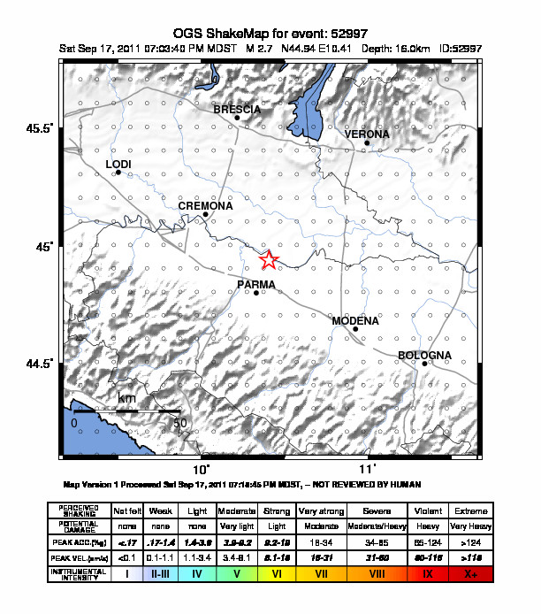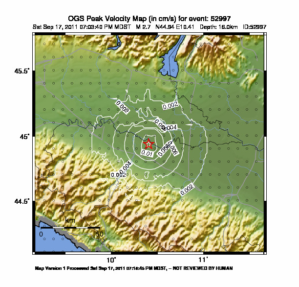 La mappa mostra gli ultimi 100 terremoti (simboli marrone) localizzati entro 30 km dall'epicentro e gli eventi con magnitudo maggiore di 3.8 (con simbolo viola, se presenti) localizzati dal 1977 nella stessa area. Clicca su ogni evento per dettagli. È inoltre possibile scaricare il file .kml o .csv con tutti gli eventi da noi registrati, entro 30 km dall’epicentro, a partire dal 1977. export in csv format export in kml formatLegenda