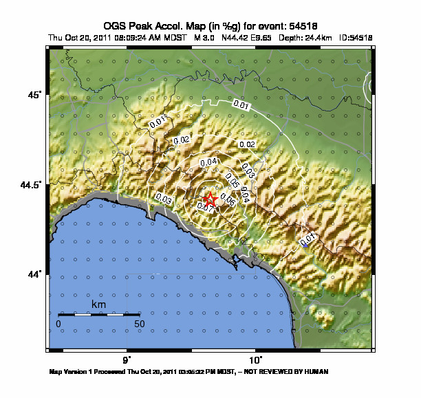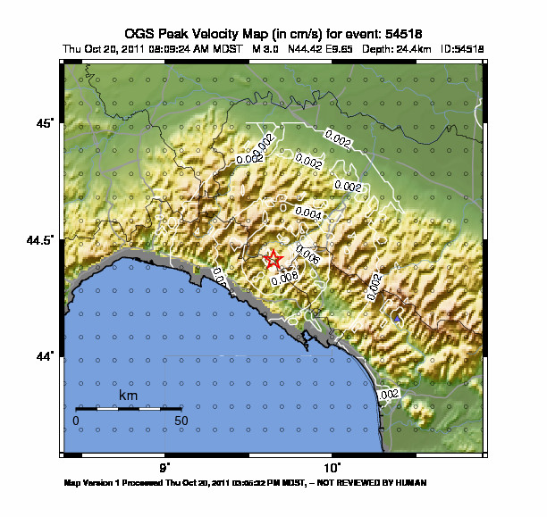 La mappa mostra gli ultimi 100 terremoti (simboli marrone) localizzati entro 30 km dall'epicentro e gli eventi con magnitudo maggiore di 3.8 (con simbolo viola, se presenti) localizzati dal 1977 nella stessa area. Clicca su ogni evento per dettagli. È inoltre possibile scaricare il file .kml o .csv con tutti gli eventi da noi registrati, entro 30 km dall’epicentro, a partire dal 1977. export in csv format export in kml formatLegenda