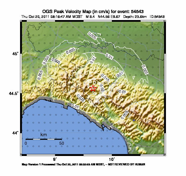 La mappa mostra gli ultimi 100 terremoti (simboli marrone) localizzati entro 30 km dall'epicentro e gli eventi con magnitudo maggiore di 3.8 (con simbolo viola, se presenti) localizzati dal 1977 nella stessa area. Clicca su ogni evento per dettagli. È inoltre possibile scaricare il file .kml o .csv con tutti gli eventi da noi registrati, entro 30 km dall’epicentro, a partire dal 1977. export in csv format export in kml formatLegenda