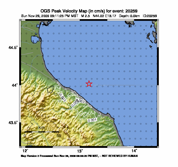 La mappa mostra gli ultimi 100 terremoti (simboli marrone) localizzati entro 30 km dall'epicentro e gli eventi con magnitudo maggiore di 3.8 (con simbolo viola, se presenti) localizzati dal 1977 nella stessa area. Clicca su ogni evento per dettagli. È inoltre possibile scaricare il file .kml o .csv con tutti gli eventi da noi registrati, entro 30 km dall’epicentro, a partire dal 1977. export in csv format export in kml formatLegenda