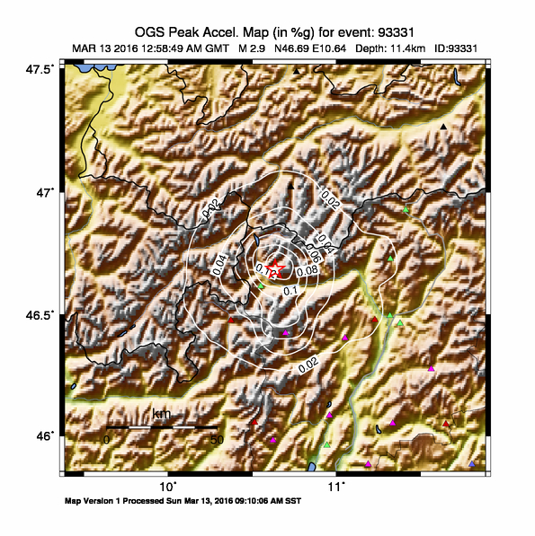La mappa mostra gli ultimi 100 terremoti (simboli marrone) localizzati entro 30 km dall'epicentro e gli eventi con magnitudo maggiore di 3.8 (con simbolo viola, se presenti) localizzati dal 1977 nella stessa area. Clicca su ogni evento per dettagli. È inoltre possibile scaricare il file .kml o .csv con tutti gli eventi da noi registrati, entro 30 km dall’epicentro, a partire dal 1977. export in csv format export in kml formatLegenda