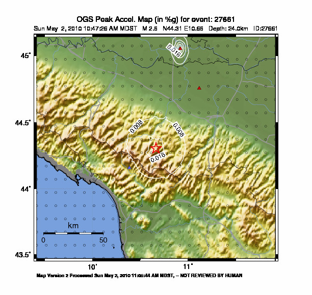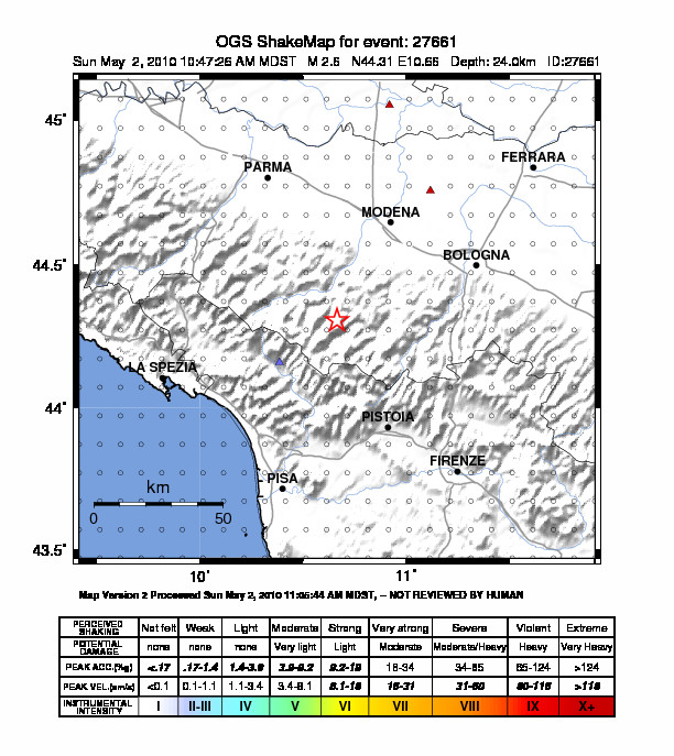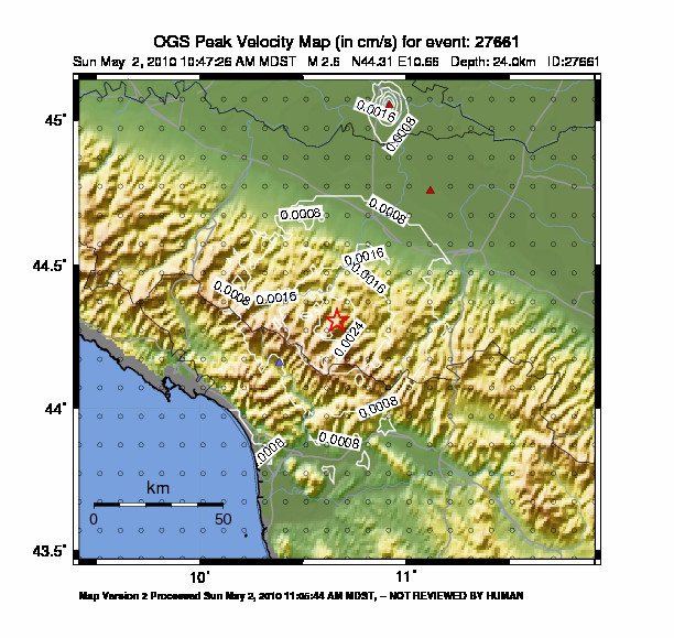 La mappa mostra gli ultimi 100 terremoti (simboli marrone) localizzati entro 30 km dall'epicentro e gli eventi con magnitudo maggiore di 3.8 (con simbolo viola, se presenti) localizzati dal 1977 nella stessa area. Clicca su ogni evento per dettagli. È inoltre possibile scaricare il file .kml o .csv con tutti gli eventi da noi registrati, entro 30 km dall’epicentro, a partire dal 1977. export in csv format export in kml formatLegenda