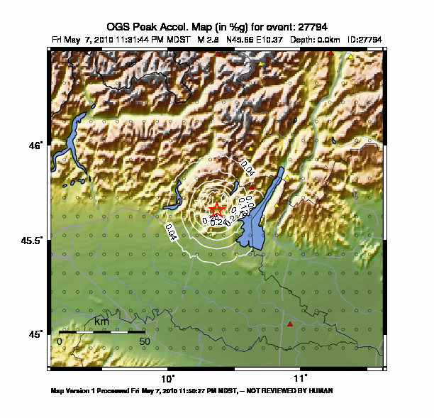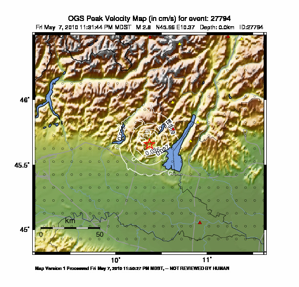 La mappa mostra gli ultimi 100 terremoti (simboli marrone) localizzati entro 30 km dall'epicentro e gli eventi con magnitudo maggiore di 3.8 (con simbolo viola, se presenti) localizzati dal 1977 nella stessa area. Clicca su ogni evento per dettagli. È inoltre possibile scaricare il file .kml o .csv con tutti gli eventi da noi registrati, entro 30 km dall’epicentro, a partire dal 1977. export in csv format export in kml formatLegenda