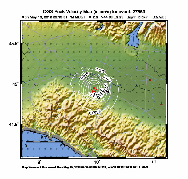 La mappa mostra gli ultimi 100 terremoti (simboli marrone) localizzati entro 30 km dall'epicentro e gli eventi con magnitudo maggiore di 3.8 (con simbolo viola, se presenti) localizzati dal 1977 nella stessa area. Clicca su ogni evento per dettagli. È inoltre possibile scaricare il file .kml o .csv con tutti gli eventi da noi registrati, entro 30 km dall’epicentro, a partire dal 1977. export in csv format export in kml formatLegenda