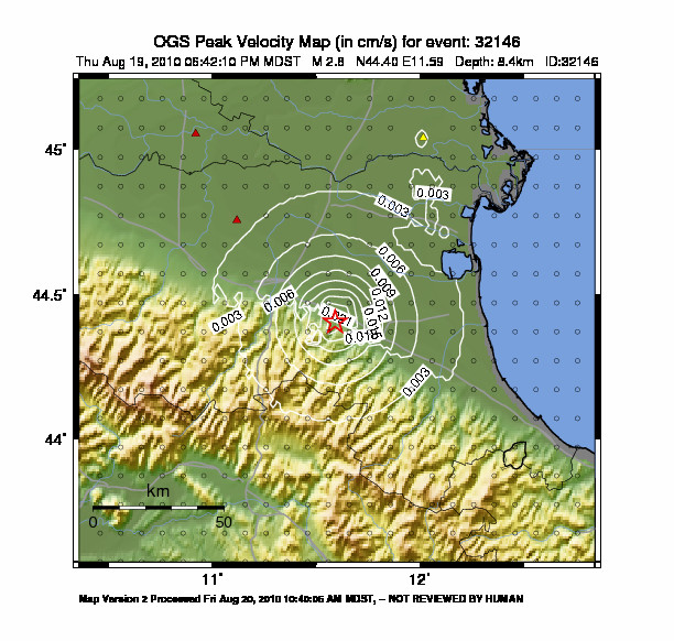 La mappa mostra gli ultimi 100 terremoti (simboli marrone) localizzati entro 30 km dall'epicentro e gli eventi con magnitudo maggiore di 3.8 (con simbolo viola, se presenti) localizzati dal 1977 nella stessa area. Clicca su ogni evento per dettagli. È inoltre possibile scaricare il file .kml o .csv con tutti gli eventi da noi registrati, entro 30 km dall’epicentro, a partire dal 1977. export in csv format export in kml formatLegenda