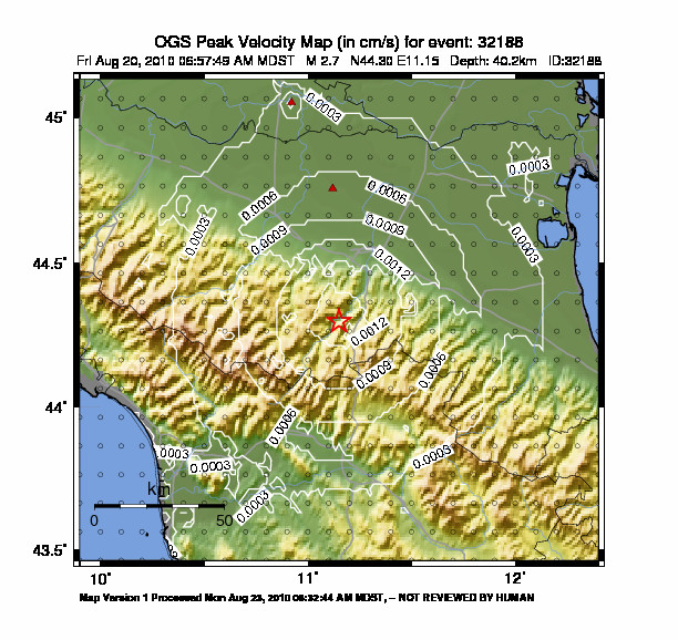 La mappa mostra gli ultimi 100 terremoti (simboli marrone) localizzati entro 30 km dall'epicentro e gli eventi con magnitudo maggiore di 3.8 (con simbolo viola, se presenti) localizzati dal 1977 nella stessa area. Clicca su ogni evento per dettagli. È inoltre possibile scaricare il file .kml o .csv con tutti gli eventi da noi registrati, entro 30 km dall’epicentro, a partire dal 1977. export in csv format export in kml formatLegenda