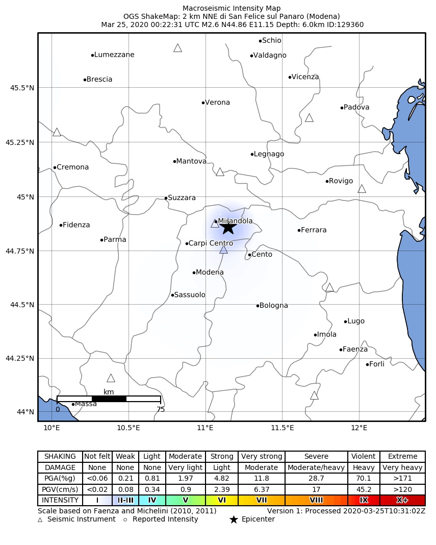 La mappa mostra gli ultimi 100 terremoti (simboli marrone) localizzati entro 30 km dall'epicentro e gli eventi con magnitudo maggiore di 3.8 (con simbolo viola, se presenti) localizzati dal 1977 nella stessa area. Clicca su ogni evento per dettagli. È inoltre possibile scaricare il file .kml o .csv con tutti gli eventi da noi registrati, entro 30 km dall’epicentro, a partire dal 1977. export in csv format export in kml formatLegenda