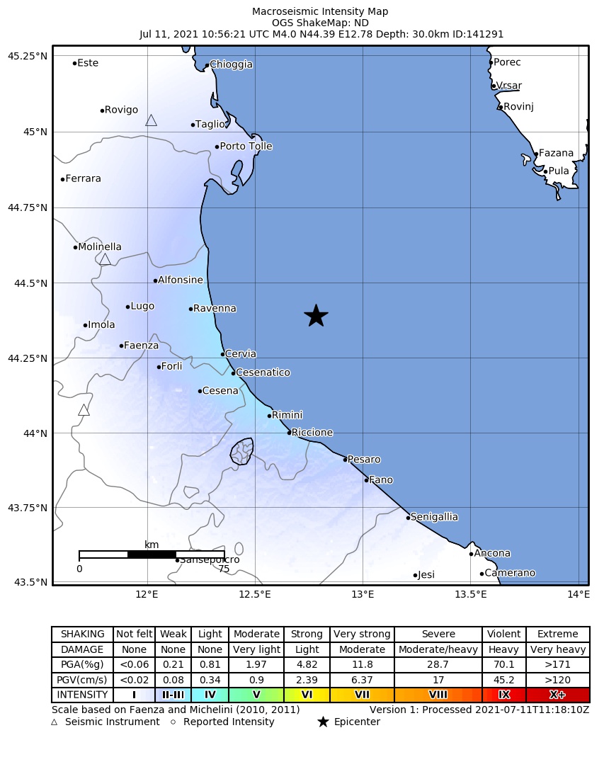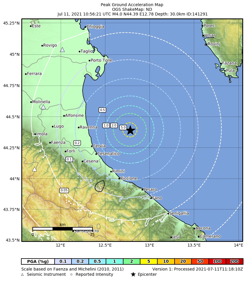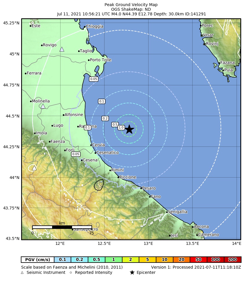 The map shows the latest 100 earthquakes (brown markers) occurred in the area around the epicenter (30 km radius) and the earthquakes with magnitude greater than 3.8 (purple marker, if any) occurred since 1977. Click on each event for details. Furthermore, it is possible to download .kml and .csv files including all events recorded by us in the area around the epicenter (30 km radius), since 1977. export in csv format export in kml formatCaption
