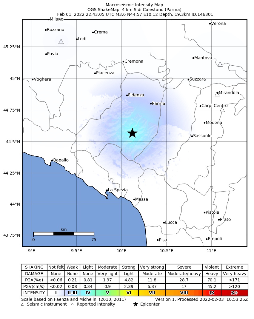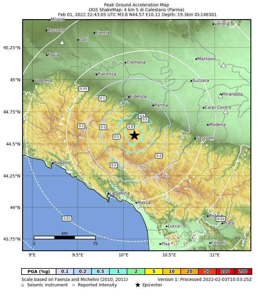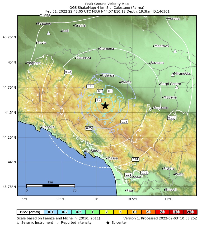 La mappa mostra gli ultimi 100 terremoti (simboli marrone) localizzati entro 30 km dall'epicentro e gli eventi con magnitudo maggiore di 3.8 (con simbolo viola, se presenti) localizzati dal 1977 nella stessa area. Clicca su ogni evento per dettagli. È inoltre possibile scaricare il file .kml o .csv con tutti gli eventi da noi registrati, entro 30 km dall’epicentro, a partire dal 1977. export in csv format export in kml formatLegenda