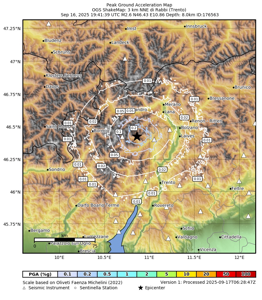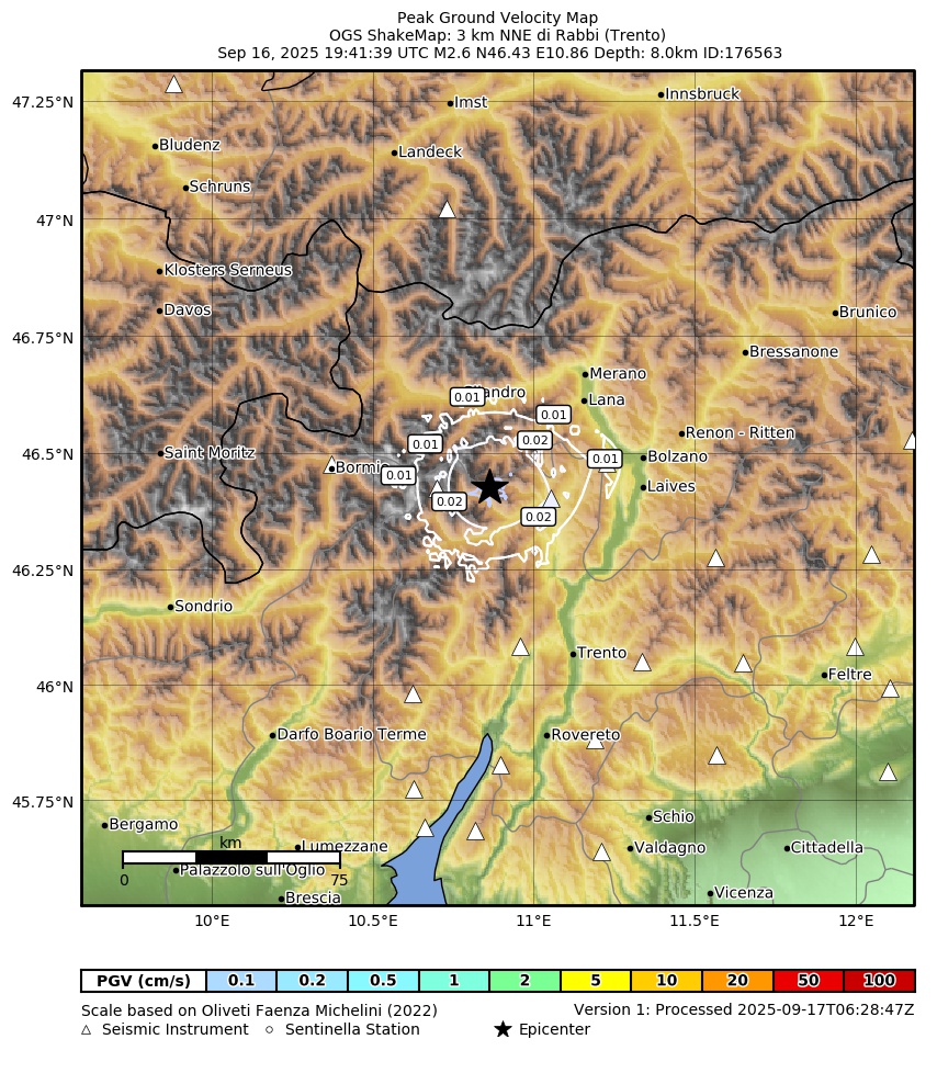 La mappa mostra gli ultimi 100 terremoti (simboli marrone) localizzati entro 30 km dall'epicentro e gli eventi con magnitudo maggiore di 3.8 (con simbolo viola, se presenti) localizzati dal 1977 nella stessa area. Clicca su ogni evento per dettagli. È inoltre possibile scaricare il file .kml o .csv con tutti gli eventi da noi registrati, entro 30 km dall’epicentro, a partire dal 1977. export in csv format export in kml formatLegenda